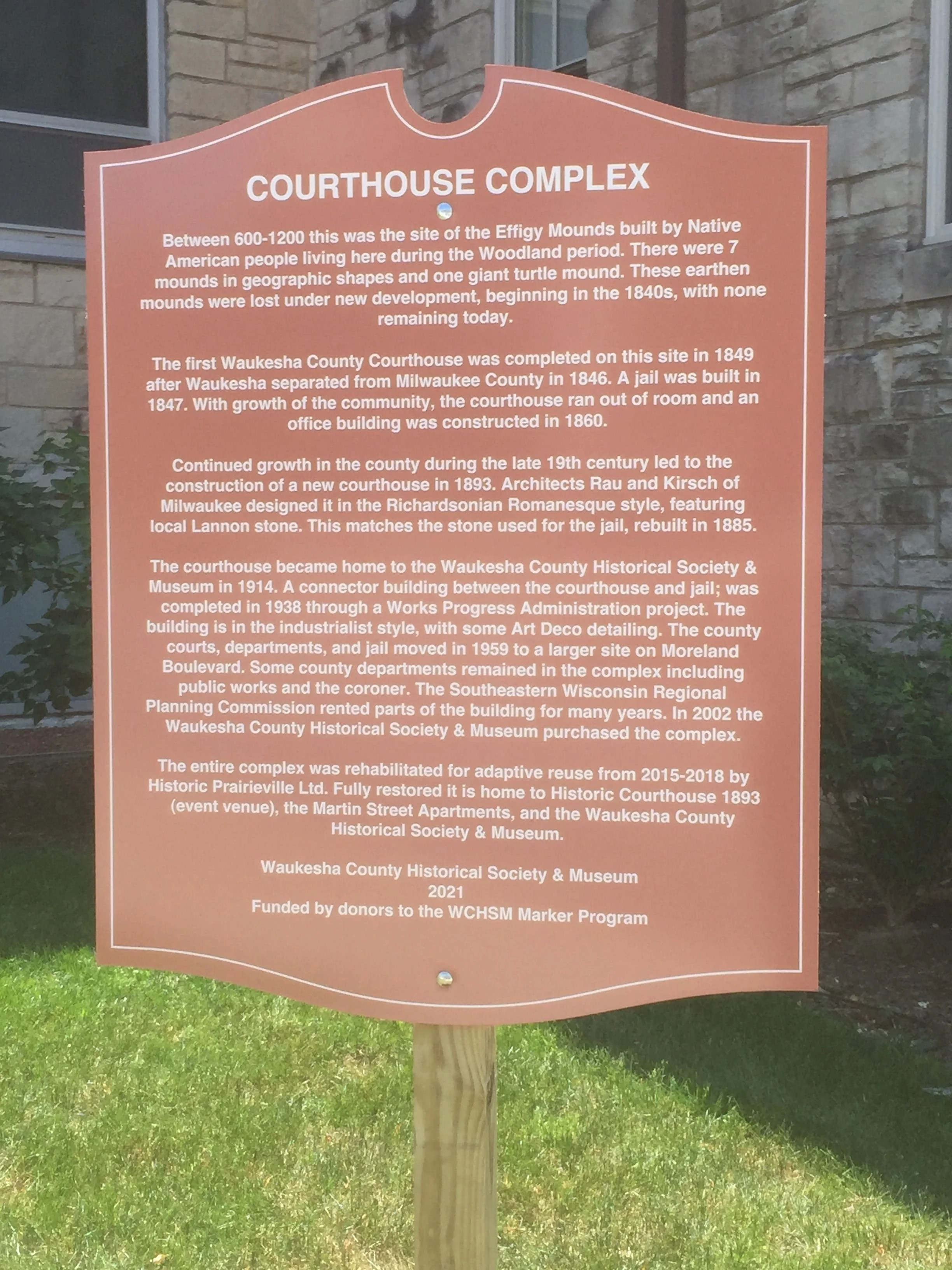 The entire complex was rehabilitated for adaptive reuse from 2015-2018 by Historic Prairieville Ltd. Fully restored it is home to Historic Courthouse 1893 (event venue), the Martin Street Apartments, and the Waukesha County Historical Society & Museum.